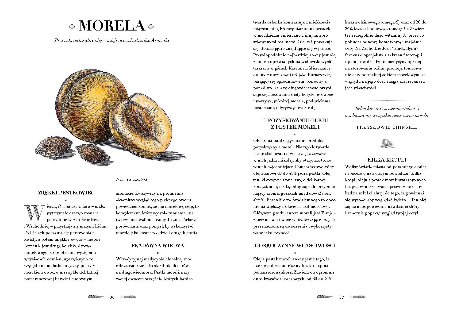 ODKRYJ SEKRETY URODY PARYŻANEK „Nie ma nic prostszego, przyjemniejszego, bardziej oczywistego ani skutecznego niż naturalna, zdrowa troska o siebie” – to filozofia słynnej paryskiej firmy kosmetycznej L’Officine Universelle Buly, która dla kobiet na całym świecie stała się synonimem luksusowej pielęgnacji łączącej francuski szyk z prostotą składników. Teraz na kartach Atlasu naturalnego piękna twórcy współczesnej odsłony tej kultowej marki, Victoire de Taillac i Ramdane Touhami, dzielą się oryginalnymi recepturami swoich kosmetyków – naturalnych i łatwych do przygotowania w domowym zaciszu. W książce znajdziesz ponad 80 składników z całego świata: ziaren, owoców, minerałów, olejków i ziół. Poznasz ich historię, niezwykłe właściwości, a dzięki przepisom na kosmetyki wzbogacisz swoje codzienne rytuały piękna. Owsiana kąpiel sprawi, że twoja skóra nabierze wyjątkowej miękkości, maseczka z moreli oczyści cerę, zaś cytrynowa „woda blasku” rozświetli włosy. To niezawodne kompendium wiedzy dla wszystkich, którzy chcą oprzeć swoją pielęgnację na łatwo dostępnych składnikach przyjaznych środowisku – bez plastiku i sztucznych dodatków – a przy tym pragną, by była ona prosta, elegancka i w paryskim stylu. Dzięki Atlasowi… podkreślenie twojego naturalnego piękna to – dosłownie – pestka!