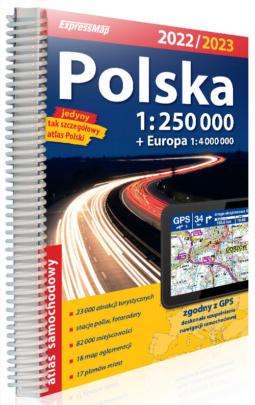 Z atlasem samochodowym Polski wydawnictwa ExpressMap podróż po kraju będzie prawdziwą przyjemnością. To jedyna tak szczegółowa tego typu publikacja na rynku. Uwzględnia 82 tys. miejscowości i 365 tys. km dróg. Publikacja jest użyteczna zarówno dla zawodowych kierowców, jak i turystów podróżujących samochodem - zaznaczono w niej także atrakcje turystyczne.