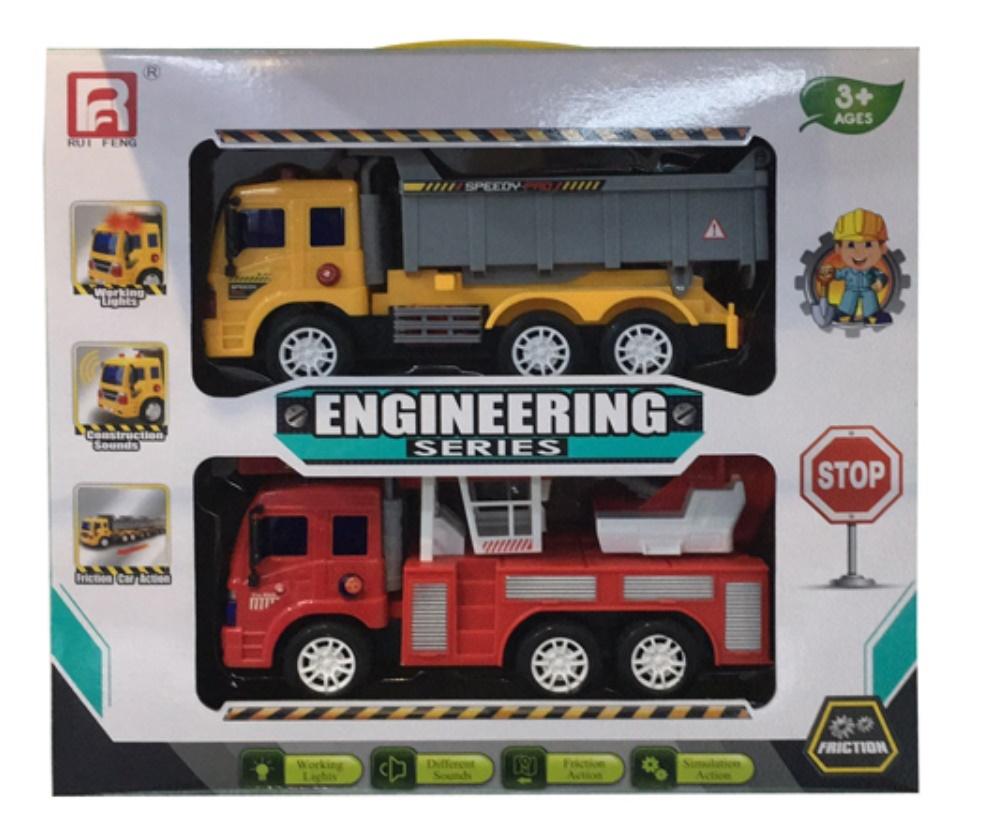 Zestaw 2 aut ciężarowych ze światłem i dźwiękiem.