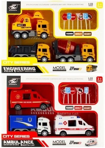 Zalety produktu: samochody posiadają funkcję pull&back dzięki czemu po pchnięciu pojazdu do przodu kontynuuję jazdę samodzielnie, samochody posiadają ruchome elementy, samochody posiadają otwierane drzwi, auta w skali 1:32. Auta Ratunkowe/Budowlane MEGA CREATIVE to zabawki, które nigdy nie znudzą się Twojemu dziecku. Podczas zabawy Ambulansem lub samochodami policyjnymi, dowie się, jak ważne w naszym życiu są Ratunkowe Samochody!, Podczas zabawy Ciężarówka,koparką czy betoniarką zapozna sie z ciężkimi pracami na placu budowy! Zawartość zestawu: Zestaw z samochodami ratunkowymi plus akcesoria, zestaw z samochodami budowlanymi plus akcesoria. Całość wykonana z plastiku. Wymiary/waga/baterie: wymiary produktu (dł. x wys. x gł.) [cm]: ambulans-12x7x5, samochód policyjny-12x9x5, ciężarówka policyjna-12x7x5, wymiary opakowania (dł. x wys. gł. ) [cm]: 31x22x6, waga produktu bez opakowania [kg]: 0,21 kg, waga produktu w opakowaniu [kg]: 0,35 kg, nie wymaga zasilania bateriami. Zestaw przeznaczony dla dzieci w wieku: 3+. Pakowany w kartonik z okienkiem.