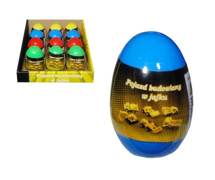 Samochód budowlany w plastikowym jajku. Zobacz co kryje jajko i zbierz całą kolekcję samochodów. . Podane wymiary są wymiarami jajka.