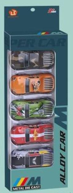 • 5 metalowe autka wyścigowe w różnych wzorach