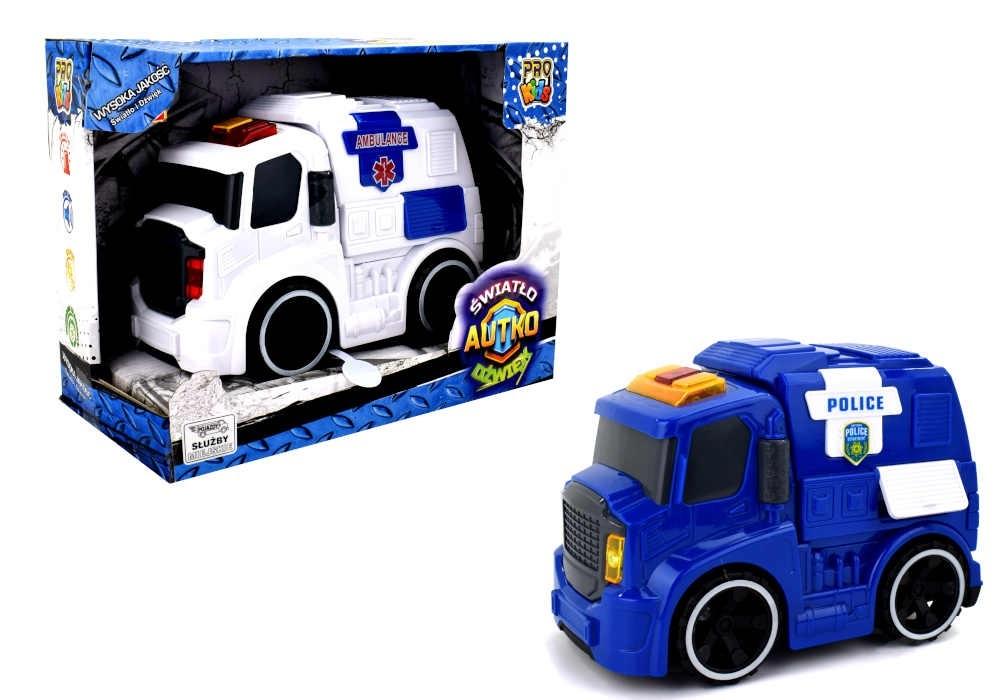 Samochód policyjny ze światłem i dźwiękiem zachwyci każde dziecko. Dźwięk rozlegającej się syreny i migające światła na dachu autka pozwolą wczuć się w zabawę. Autko posiada policyjne emblematy na boku autka oraz otwierane schowki na sprzęt policyjny. Samochód policyjny posłuży dziecku do poznawania zawodów, jakie wykonują dorośli.