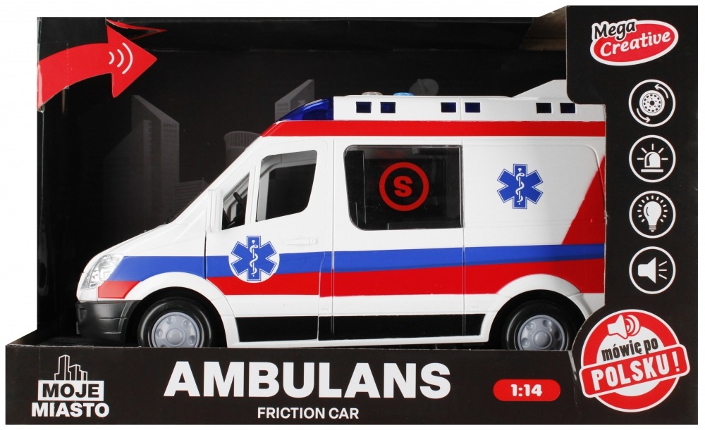 Ambulans z serii Moje Miasto od Mega Creative z pewnością spodoba się każdemu małemu ratownikowi medycznemu.