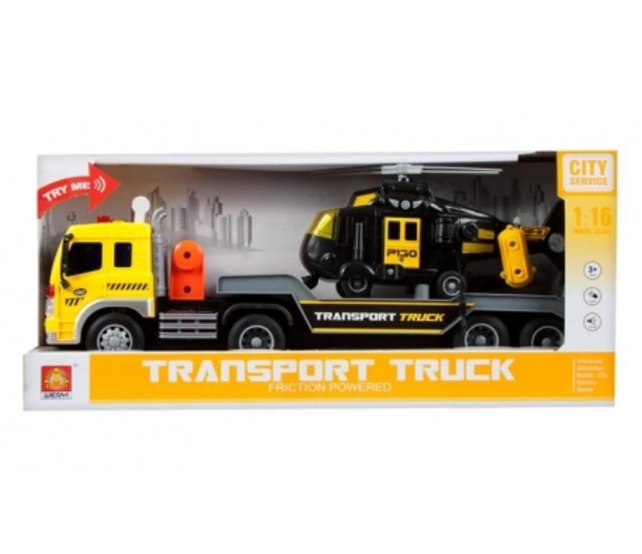 Auto ciężarowe MEGA CREATIVE zapewni dziecku wspaniałą zabawę dzięki możliwościom jakie posiada Idealny samochód dla każdego fana motoryzacji Ciężarówka w formie Lawety, która przewozi Helikopter. Zabawka posiada efekty świetlne oraz dźwiękowe. Helikopter przewożony na Lawecie posiada ruchome elementy. Pojazd w skali 1 16. Całość wykonana z plastiku. Przeznaczona dla dzieci i w wieku 3 . Wymaga zasilania bateriami 3 x AG13 - załączono do zestawu.