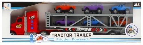 Zalety produktu: rozwijanie wyobraźni dziecka, posiada efekty dźwiękowe (odpalanie silnika, klakson, wesoła muzyka), mieści 6 szt terenowych pickupów, ciężarówka posiada otwierana lawetę aby samochody mogły zjechać z obydwóch poziomów, lawetę można odczepić od ciągnika. Auto Ciężarowe Laweta MEGA CREATIVE to zabawka która nigdy nie znudzi się Twojemu dziecku. Zawartość zestawu: samochód ciężarowy laweta, 6 samochodów terenowych. Całość wykonana z plastiku. Wymiary/waga/baterie: wymiary produktu (dł. x wys. x gł.)[cm]: 54x15x8 , wymiary opakowania (dł. x wys. x gł.) [cm]: 56x17x8, waga produktu bez opakowania [kg]: 0,47 kg, waga produktu w opakowaniu [kg]: 0,41 kg, wymaga zasilania bateriami 3 x AG13- załączono do zestawu. Zestaw przeznaczony dla dzieci w wieku: 3+