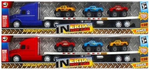 Zalety produktu: rozwija kreatywność dziecka, ciężarówka posiada funkcje pull&back dzięki czemu po pchnięciu pojazdu do przodu kontynuuję jazdę samodzielnie, ciężarówka występuje w dwóch wersjach kolorystycznych: czerwonej oraz niebieskiej. Auto ciężarowe MEGA CREATIVE zapewni dziecku wspaniałą zabawę dzięki możliwościom jakie posiada! Idealny samochód dla każdego fana motoryzacji! Ciężarówka w formie Lawety, która przewozi 3 samochody terenowe. Ten transporter to marzenie każdego chłopca! może być najlepszym prezentem na urodziny, pod choinkę! Zawartość zestawu: ciężarówka Laweta, 3 samochody terenowe. Całość wykonana z plastiku. Wymiary/waga/baterie: wymiary produktu Laweta (dł. x wys. x gł.) [cm]: 60x11x8, wymiary opakowania ( dł. x wys. gł.) [cm]: 62x14x11,waga produktu bez opakowania [kg]: 0,41 kg, waga produktu w opakowaniu [kg]: 0,60 kg. Nie wymaga zasilania bateriami. Zabawka przeznaczona dla dzieci w wieku: 3+. Pakowana w kartonik z okienkiem.