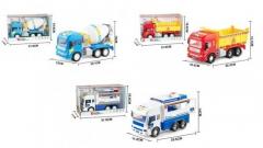 Auto ciężarowe, plastikowe, ze światłem i dżwiękiem. Mix trzech wzorów- wywrotka, auto policyjne i betoniarka.