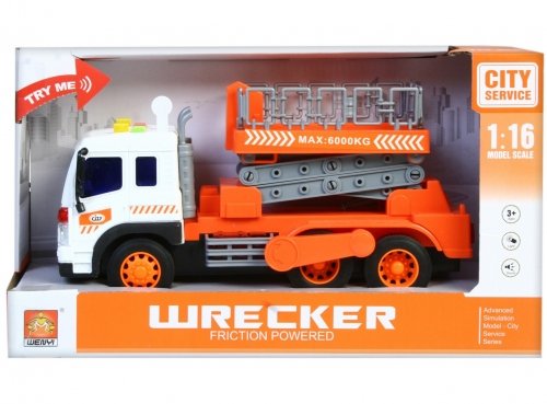 Pozwól swojemu dziecku stać prawdziwym kierowcą ciężarówki. Taki samochód potrzebny jest na każdym placu budowy. Auto ciężarowe Mega Creative to idealny pomysł na wspaniałą zabawę z przyjaciółmi! Pojazd po włączeniu wydaje odgłosy jeżdżącej ciężarówki oraz świecą się lampki ostrzegawcze. Wydaje odgłosy trąbienia, dźwięk cofania. Ciężarówka posiada podnośnik, po pociągnięciu " wajchy" , podnośnik wzbija się w górę. Samochód w skali 1:16. Produkt wykonany z plastiku. Wymaga zasilania bateriami 3xLR44. Przeznaczony dla dzieci od lat 3. Wymiary opakowania (dł.x wys.x gł.) [cm] 32x19x11