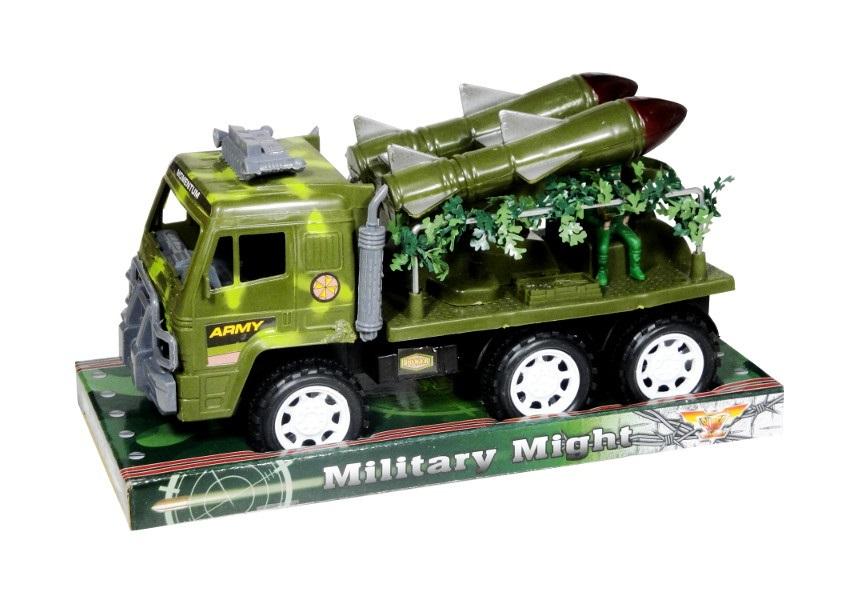 Auto wojskowe razem z pociskami i żołnierzykami. #&Produkt zapakowany w kartonową podstawkę z przezroczystym kloszem.#&Zabawka dla dzieci od 3 lat. #&Podane wymiary są wymiarami opakowania.