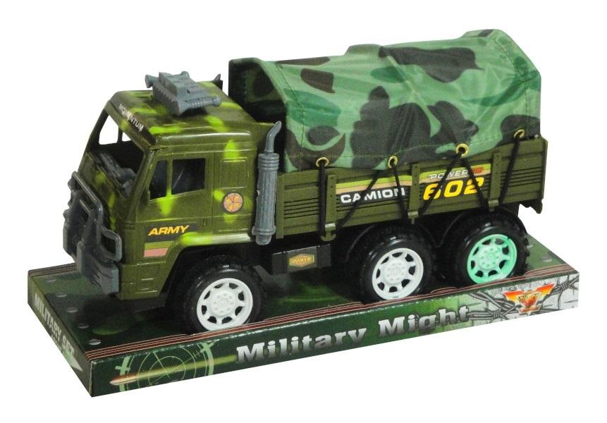 Plastikowa ciężarówka wojskowa urozmaici militarną zabawę. #&Produkt zapakowany w kartonowa podstawkę z przezroczystym kloszem.#&Zabawka dla dzieci od 3 lat. #&Podane wymiary są wymiarami zabawki w opakowaniu.