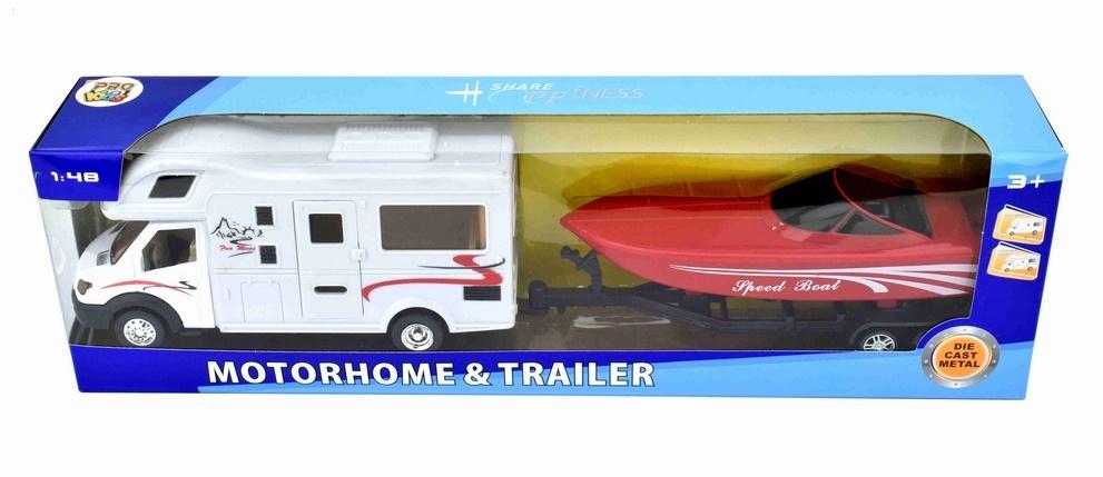 Klasyczna zabawka dla chłopców, którzy mogą bawić się w dalekie podróże. Oczywiście autami można też bawić się każdym osobno. Zestawy można łączyć i powiększać kolekcję. Zestaw składa się z metalowego auta oraz dołączanej przyczepy. Zabawka dla dzieci w wieku 3+ Zawiera metalowo-plastikowy model samochodu z przyczepą w skali 1:48. Opakowanie window box 36,5x10,5x6,5 cm Wiek: 3+ Waga: 295 g