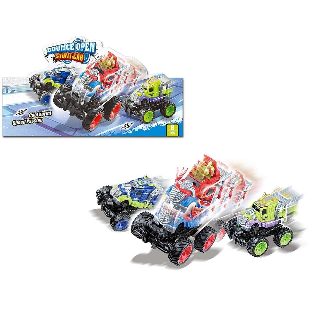 Zabawka imitująca samochód kaskaderski. Umieszczone na dużych kołach pojazdy mogą odbijać się i robić kaskaderskie akrobacje.