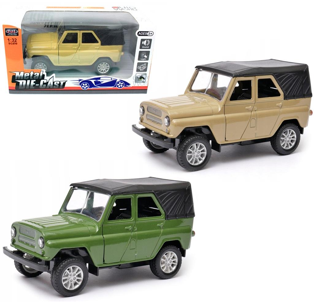 Metalowy model samochodu terenowego ze światłem i dźwiękiem.