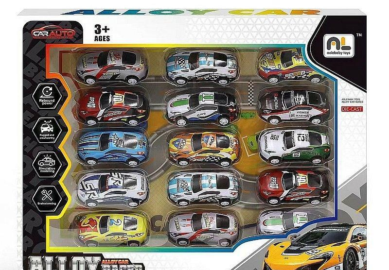 Zestaw 15 autek metalowych; 32x24,5x4,5cm, W/B