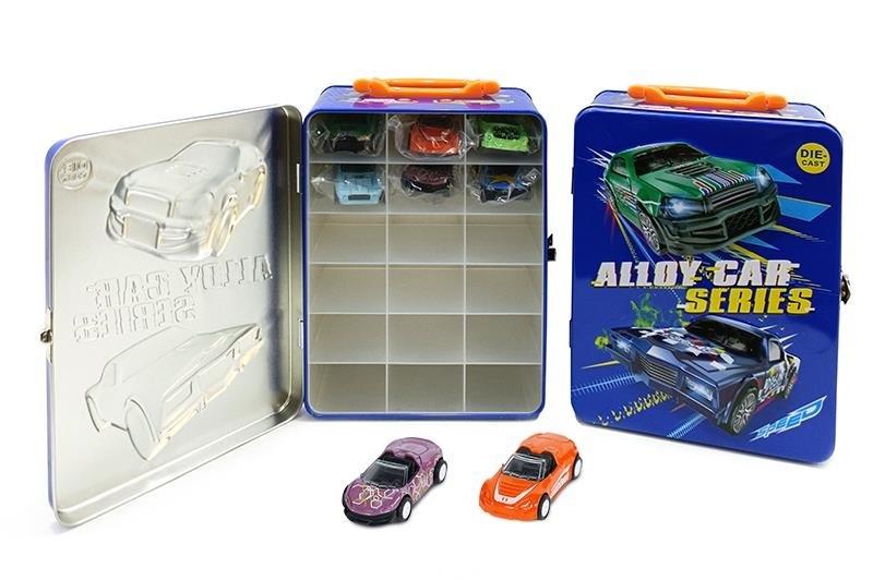 W zestawie: 6 aut 7 cm., Metalowa walizka z miejscem na 18 samochodów, funkcje: napęd pull back, wym. Opk: 15,5 x 8,5 x 19,5 cm., 3+