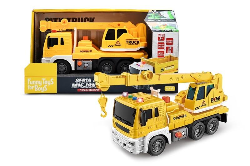 Funkcje: dźwięk pracy pojazdu, światło ostrzegawcze, ruchome ramię dźwigu.