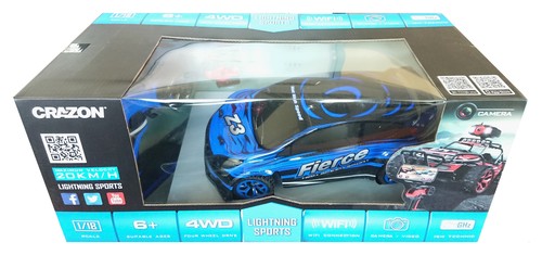 Auto na radio 30 cm z kamerką i łącznością Wi-Fi, prędkość maksymalna 20 km/h, napęd na cztery koła. Wymaga 2 baterii AA. Dla dzieci w wieku od 6 lat.