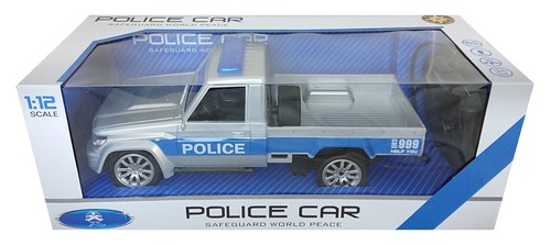 Zdalnie sterowany model samochodu - policyjnej półciężarówki w skali 1:12. Posiada wbudowany akumulator, w zestawie ładowarka. Dla dzieci w wieku od 3 lat.