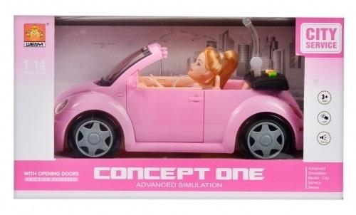 W zestawie znajduje się auto osobowe w kolorze różowym oraz lalka. Samochód posiada funkcje świetlne oraz dźwiękowe uruchamiane za pomocą przycisków. Auto w skali 1:14. Wymaga zasilania 3 bateriami AG13 - załączonymi do zestawu. Zabawka wykonana z plastiku i tworzywa sztuccznego. Produkt przeznaczony dla dzieci w wieku: 3+.