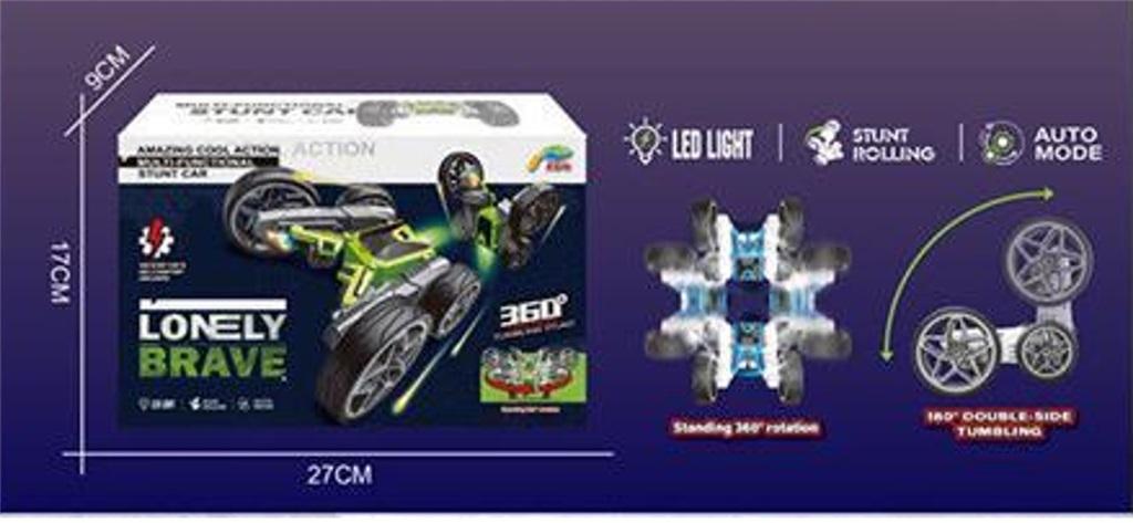 Auto przewrotka sterowana pilotem . Auto porusza się we wszystkich kierunkach, staje i obraca się o 360 stopni, koziołkuje pod kątem 180 stopni.. Pojazd świeci także kolorowym światełkiem Zabawka działa na baterie typu AAA (niezałączone) oraz baterię litową (akumulator) załączoną do zabawki. Zabawka przeznaczona dla dzieci od 6 lat. Produkt zapakowany w kartonowe opakowanie. Podane wymiary stanowią wymiar opakowania.