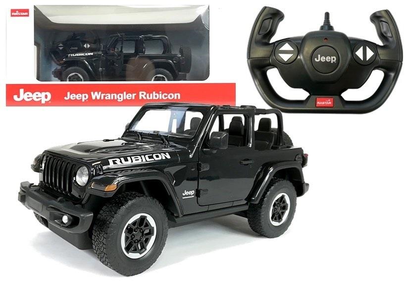 Auto R/C Jeep Wrangler Rubicon 1:14 Rastar Czarny Zdalnie sterowany samochód Jeep Wrangler Rubicon w kolorze czarnym to autentyczna replika w skali 1:14. Samochód za pomocą pilota porusza się do przodu, do tyłu, skręca oraz hamuje. Ze względu na swój terenowy charakter może być stosowany zarówno wewnątrz jak i na zewnątrz. Światła w pojeździe uruchamiają się kiedy jest uruchomiony oraz kiedy jedzie. Drzwi pojazdu są otwierane ręcznie, wnętrze i podwozie pojazdu są zaprojektowane bardzo dokładnie z dbałością o zgodność z oryginalnym pojazdem. Zdalnie sterowany Jeep jest kierowany za pomocą pilota działającego radiowo, osiąga prędkość 7 kilometrów na godzinę. Pilot ma zasięg około kilkunastu metrów i w przeciwieństwie od pilotów na podczerwień może być bez żadnych problemów używany na zewnątrz przy pełnym słońcu. Samochód osiąga prędkość 9 km/h. Zdalnie sterowany samochód Jeep Wrangler Rubicon Marka: Jeep Wrangler Kolor: Czarny Skala modelu: 1:14 Maksymalna szybkość: 7 km/h Rodzaj pilota: 2,4 GHz Dodatkowe cechy: Światła, otwierane drzwi Zabawka zapakowana jest w stylowe opakowanie z dużym, przezroczystym okienkiem, przez które dokładnie można obejrzeć zawartość zestawu. Dzięki swojemu opakowaniu świetnie nadaje się na prezent. Czarny pojazd R/C Jeep Wrangler Rubicon do działania wymaga 5 baterii AA, a pilot - 2 baterii AA (nie są dołączone do zestawu). Wymiary pojazdu: 30 cm x 18 cm x 15 cm Wymiary opakowania: 43 cm x 25 cm x 20 cm Waga z opakowaniem: 1 kg.
