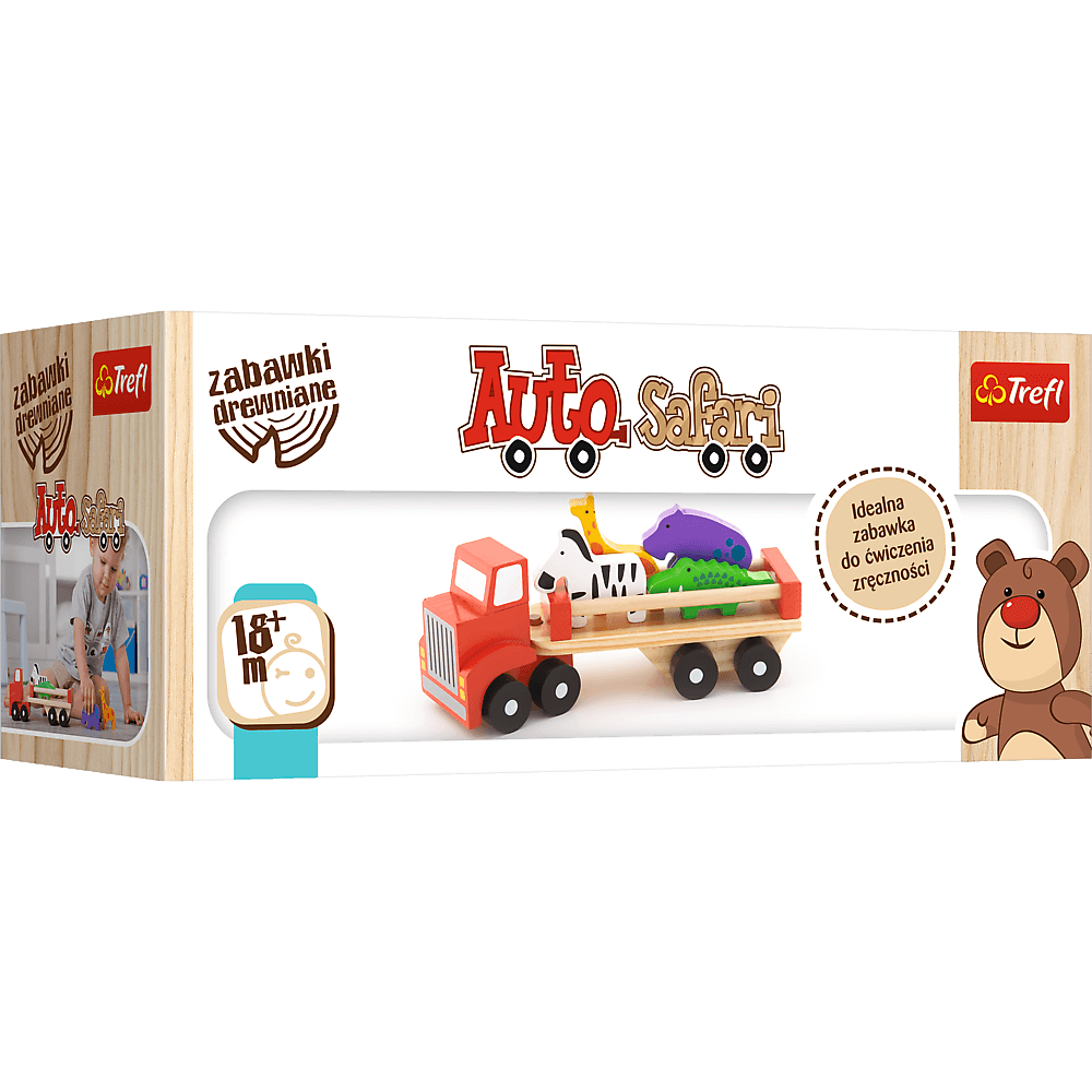Auto Safari wzmacnia koordynację wzrokowo-ruchową, jak również jest idealną zabawką do ćwiczenia zręczności i umiejętności manualnych