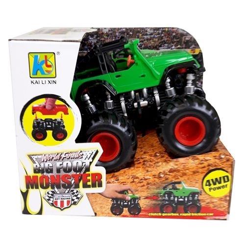 Zielone auto terenowe. Posiada wielkie koła, które pozwalają napokonanie każdej przeszkody. Wspaniały prezent dla małych kolekcjonerów. Pojazd posiada przyczepne opony wykonane z gumy, dzięki którym, jest w stanie pokonać wszelkie przeszkody, które staną mu na drodze.
