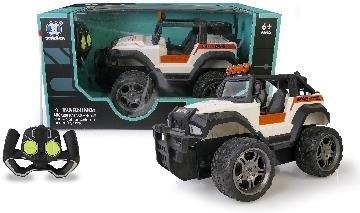 W zestawie: auto, kontroler, akumulator, ładowarka, Funkcje: pełny zakres jazdy, światła przednie, efekty dźwiękowe, ustawienie zbieżności kół, terenowe opony, Pozostałe informacje: dł. auta 23 cm, wym. opak. 33,5 x 17,5 x 19 cm, baterie: akumulator 3.7v (auto) dołączony, 2 x aa (kontroler) niedołączone, 6+