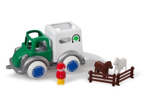 Pojazd do przewozu koni z figurkami Jumbo - pojazdy Vikingtoys to zabawki bezpieczne, proste, miękkie, ciche, a przede wszystkim wytrzymałe. Wykonane są z wysokiej jakości materiałów. Różnorodne, kolorowe pojazdy można łączyć w zestawy z garażami, co umożliwia ciekawą i kreatywną zabawę. Każde dziecko znajdzie dla siebie ulubione auto np. policja, taxi, ambulans, helikopter itp. Rozmiar 25-28cm. Zabawka zalecana dla dzieci od 1 roku życia.