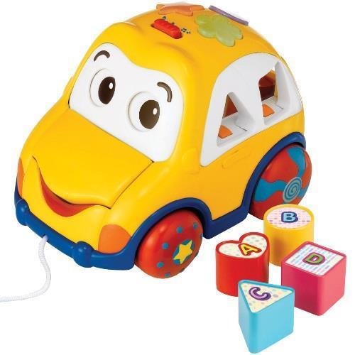 Auto Wesołek Smily Play może z Twoim dzieckiem zwiedzić cały świat! Nasze kolorowe zabawki edukacyjne dla dzieci doskonale sprawdzają się w roli sortera – znajdujące się po bokach otwory na klocki zachęcają maluszka do wypełniania zadania, przyczyniając się jednocześnie do jego wszechstronnego rozwoju. Wesołek wypowiada nazwę kształtu wrzucanego klocka. Radosne autko zachęca dziecko do zabawy, wydając zabawne dźwięki i grając melodyjki. Dlaczego nasze interaktywne zabawki dla dzieci są idealne dla rocznego malucha, ale także dla dwulatka lub trzylatka? Dlatego, że dzięki nim można wyruszyć w naprawdę fantastyczną podróż! Producent zabawek dostarcza w postaci Auta Wesołka sporo frajdy i przygód, które będzie można odbywać podczas kolejnych wycieczek z samochodzikiem ciągniętym na sznureczku! Nowe miejsca, nowe osoby, nowe przeszkody i sposoby ich przezwyciężania – to wszystko czeka na ciekawe świata pociechy! Wpływa na stopniowe zwiększanie się zdolności manualnych. Wspiera koordynację na polu wzrok – ruch. Uczy rozpoznawania kształtów. Przyczynia się do stymulacji zmysłów wzroku, słuchu i dotyku. Przyczynia się do rozwoju analizatora wzrokowego i zwiększa precyzję ruchów małych dłoni i paluszków. Pobudza wyobraźnię i kreatywne myślenie. Wyłącza się automatycznie po dłuższym czasie nieaktywności dzięki specjalnej technologii. Co potrafi nasze auto? Autko mówi po polsku, przyczyniając się do rozwoju umiejętności językowych. Zachęca do aktywności, wypowiadając nazwy kształtów w trakcie wrzucania do wnętrza poszczególnych klocków. Wykonuje ruchy oczami. W trakcie jazdy podnosi i opuszcza maskę. Wydaje dźwięki i pozwala na uruchomienie efektów świetlnych. Posiada specjalny sznureczek do ciągnięcia. Szukając najlepszej zabawki dla rocznego dziecka, dwulatka czy trzylatka, warto sięgnąć po autko Wesołek Smily Play! Dzięki wykorzystaniu bezpiecznego plastiku idealnie sprawdza się ono już w pierwszych latach życia, a przy tym łatwo utrzymać je w czystości. Wyłącza się automatycznie po dłuższym czasie nieaktywności dzięki specjalnej technologii. Zabawka edukacyjna spełnia normy Unii Europejskiej w zakresie bezpieczeństwa oraz wpływu na zdrowie i środowisko. Szukając najlepszej zabawki dla rocznego dziecka, dwulatka czy trzylatka warto sięgnąć po Autko Wesołek Smily Play! Dzięki wykorzystaniu bezpiecznego plastiku idealnie sprawdza się ono już w pierwszych latach życia, a przy tym łatwo utrzymać je w czystości. Nasza zabawka edukacyjna spełnia normy Unii Europejskiej w zakresie bezpieczeństwa oraz wpływu na zdrowie i środowisko. Wiek: 12m+ Wymaga baterii: .3xAA 1,5V - dołączone