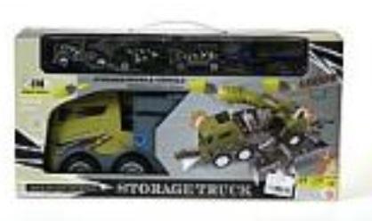 Auto wojskowe - baza transportowa, z wyrzutnią rakiet i autek, 3 pojazdy metalowe; 40,5x10x19,5cm, W/B