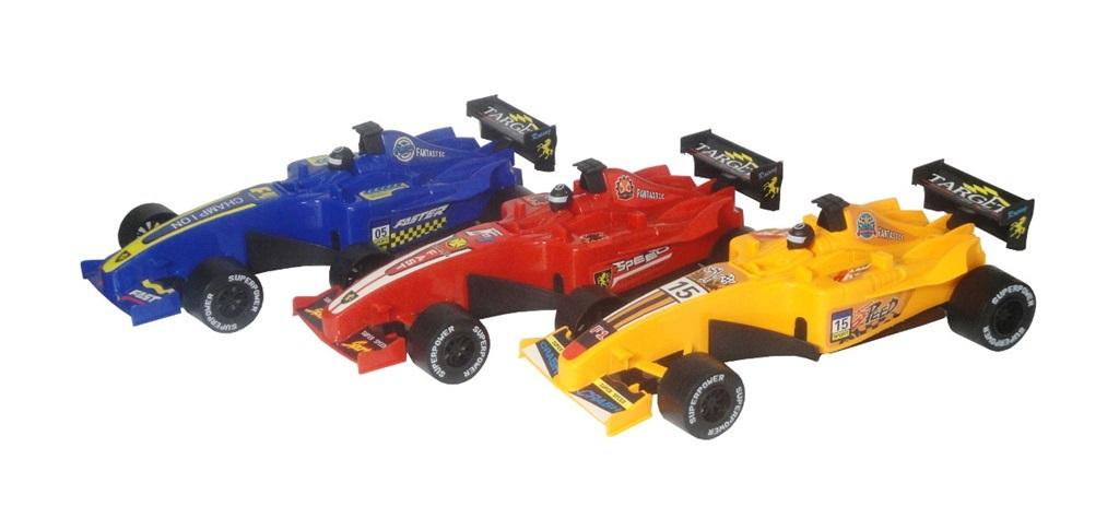 Plastikowy samochód wyścigowy. Zbierz wszystkie kolory, baw się razem z rodziną lub kolegami i sprawdź czyj samochód pojedzie najdalej. Zabawka zapakowana w przezroczysty worek. Podane wymiary są wymiarami opakowania. Zabawka dla dzieci od 3 lat.