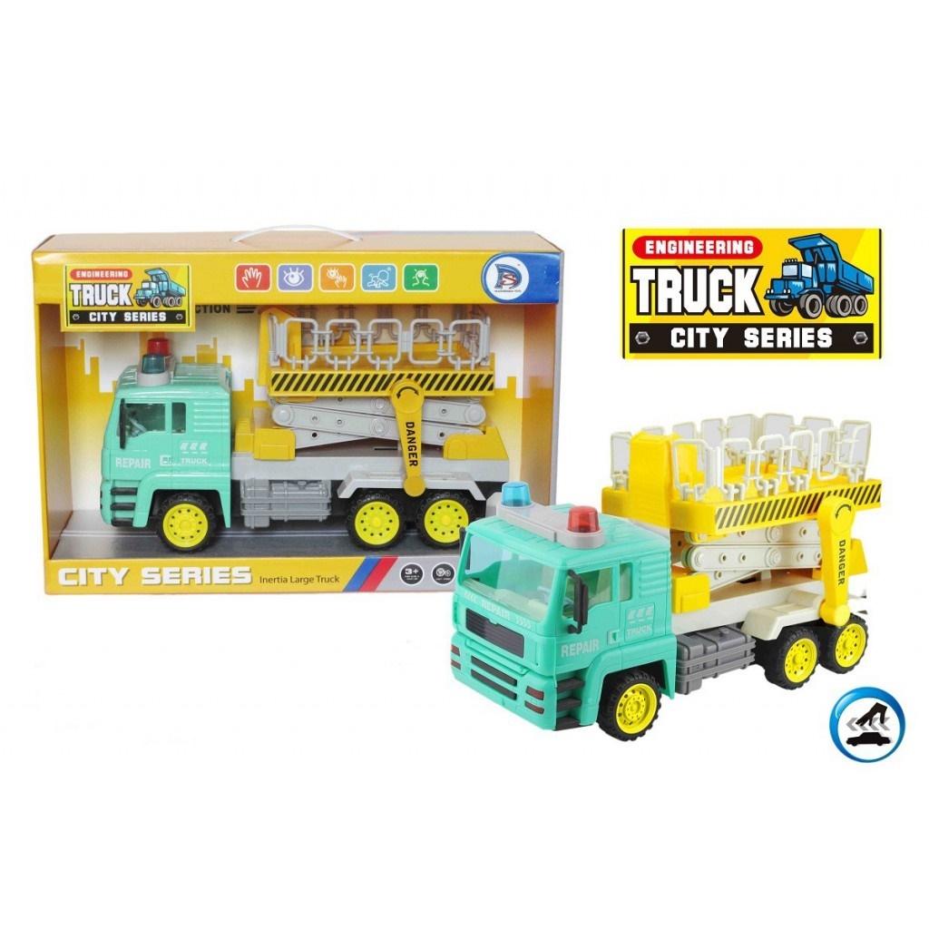 Duży podnośnik do złudzenia przypomina prawdziwy pojazd (36cm). Idealny do zabawy w domu. Posiada ruchome elementy i platformę na której zmieści się duży ładunek.