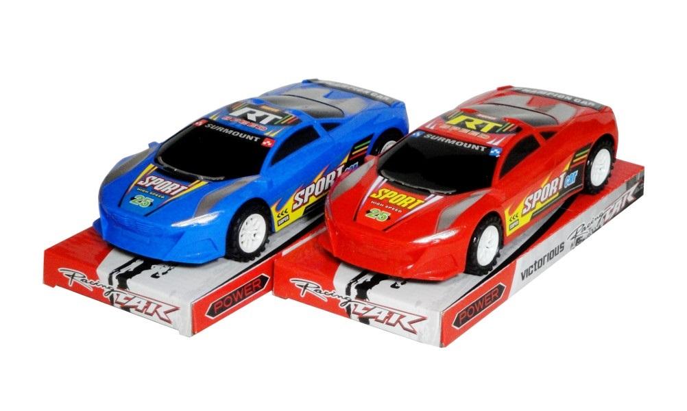 Sportowy pojazd z oryginalnym designem. Pojazd z napędem ciernym. Produkt występuje w kilku wersjach kolorystycznych, wybierany losowo. Cena dotyczy jednej sztuki. Zabawka przeznaczona dla dzieci od 3 lat. Podane wymiary są wymiarami opakowania. Zabawka zapakowana w kartonową podstawkę z przezroczystym kloszem.