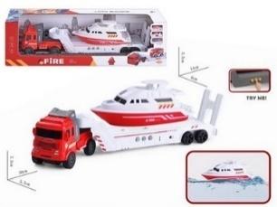 Auto z przyczepą + motorówka dźwięk open box 37x13x7,5cm