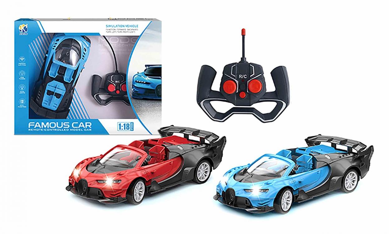 W zestawie: auto dł. 24 cm, pilot, ładowarka, akumulator, funkcje: 27 mhz, pełny zakres jazdy, gumowe opony, działające przednie światła, ustawienie zbieżności kół, 2 wzory, wym. Opak. 36 x 29 x 7,5 cm, baterie: 1 x 3,7V (auto) dołączony, 2 x AA 1,5V (pilot) niedołączone, 3+