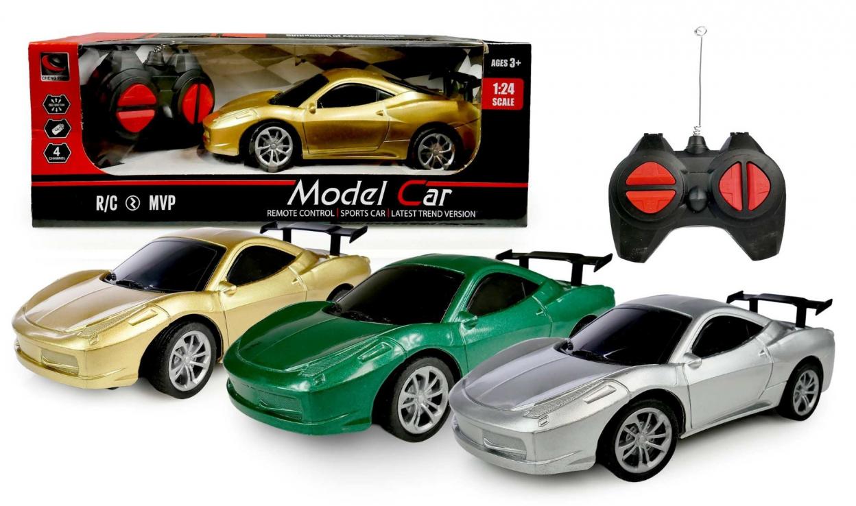 W zestawie: auto dł. 16 cm, funkcje: pilot, pełny zakres jazdy, ustawienie zbieżności kół, gumowe opony, wym. Opak. 25 x 9,2 x 10 cm, baterie 3 x AA 1,5V (auto) 2 x AA 1,5V (pilot) niedołączone, 3+