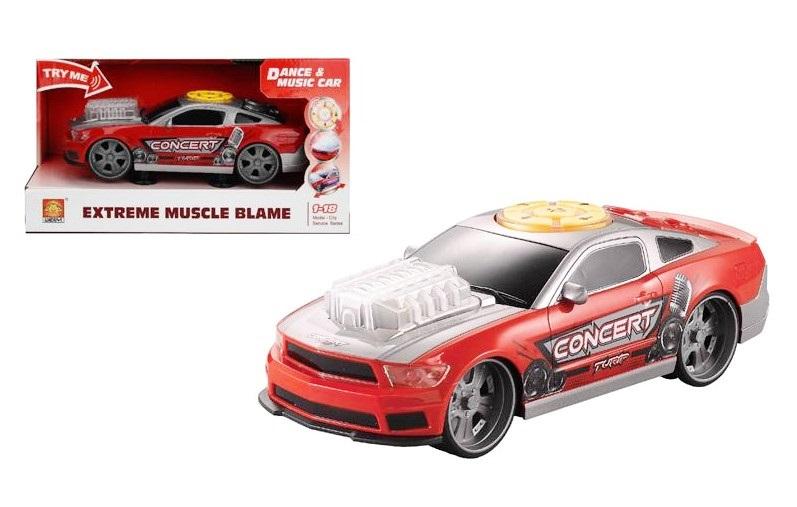 Plastikowy samochód sportowy, który tańczy i gra melodie. Podczas odtwarzania melodii samochód świeci kolorowymi światełkami. Ponadto auto wydaje dźwięki: zapalania silnika, klaksonu, cofania. Zabawka działa na baterie typu AA. Baterie znajdują się w zabawce.