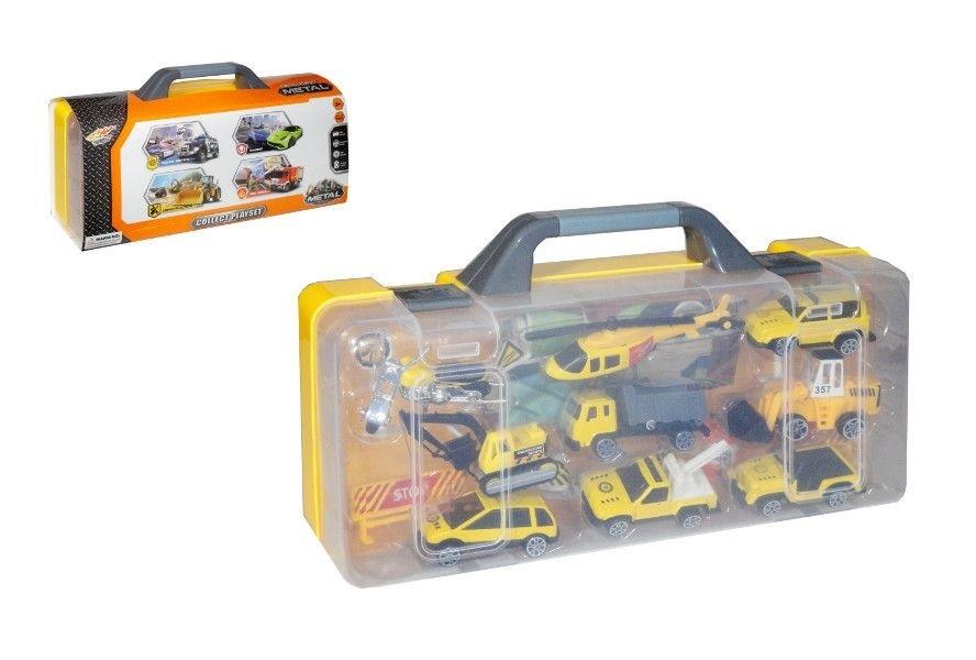 Zestaw pojazdów budowlanych razem z akcesoriami (np. znaki drogowe), który jest jednocześnie grą. W środku znajduje się mata wraz z kostką i instrukcją gry. Dzieci za pomocą tej zabawki będą mogły się bawić na 2 sposoby (pojedynczo pojazdami albo jako gra). Pojazdy w skali 1:64.
