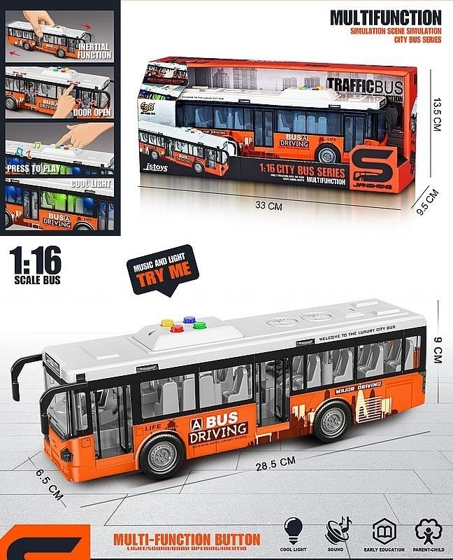 autobus na batarie, otwierane drzwi, światło, dźwięk; 28,5x9x6,5cm, W/B