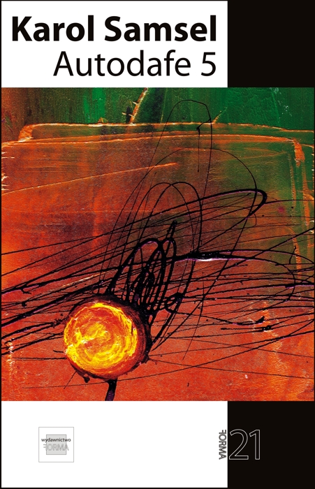 Chciałem przeczytać tę piątą sekwencję konwulsyjnego poematu Karola Samsela „od deski do deski”, ale – nie ma „desek” (może trzeba by ogłaszać taką nieskończoną teraźniejszość mówienia – bez okładek?). Zatem dałem się porwać nurtowi – przecież nie „rzeki”, ale czy mogę powiedzieć: „płomienia”, kiedy – czytając – płynę i płonę? I tym samym – samowolnie – spokrewniam Autodafe z duchem Heraklita? Mówiąc o poemacie, w którym „literatura” samą siebie uwydatnia i tym samym kompromituje, a nawet „unicestwia”? Nadmierna ilość cudzysłowów chyba wskazuje na powinowactwo z konstatacją autora (poety i filozofa), że „literatura nie jest bytem i nie jest też nicością, używanie jej jako narzędzia (w przeciwieństwie do religii) jest nieuprawnioną substancjalizacją”. Wspomniałem wcześniej o rzece (i płomieniu), myśląc także o tym, że jest to tekst redundantny, odbijający w mowie wszystko, co napotyka na swojej drodze. Nic więc dziwnego, a nawet – jakoś „zasadniczego” – że bierze w siebie gruntowną polemikę także z polderami literatury samolubnej. I jeszcze coś, co wydaje mi się wyjątkowo ważne dla lektury tego niezwykłego samo-bycia i samo-spalania: przywołanie Visitation Pontorma. Warto mieć przed oczami (duszy lub pamięci) ten obraz, fresk albo i szkice rysunkowe. Działają jak trompeje. Wprawiają słowa w inny wymiar, w konkretną dotykalność bytu i bycia autora – przedziwnie przekreślającego siebie sobą. Bogusław Kierc Karol Samsel (ur. w 1986 r.) – poeta, krytyk literacki, filozof, doktor habilitowany nauk humanistycznych, doktor filozofii. Zastępca dyrektora w Międzydziedzinowej Szkole Doktorskiej UW, adiunkt w Zakładzie Literatury Romantyzmu i kierownik Pracowni Historii Dramatu 1864-1939 Wydziału Polonistyki UW, członek Polskiego Towarzystwa Conradowskiego. Laureat nagrody imienia Władysława Broniewskiego (2010) i zdobywca statuetki imienia Wandy Karczewskiej (2011). Redaktor działu esejów i szkiców w kwartalniku literacko-kulturalnym „eleWator”. Mieszka w Ostrołęce. Na podstawie materiału korespondencyjnego Seweryna Pollaka z Muzeum Literatury imienia Adama Mickiewicza opracował edycję Listów do Seweryna Wandy Karczewskiej. Współredaktor Pism wybranych Cypriana Kamila Norwida (2021). Wydał m.in. tomy wierszy: Dormitoria (2011), AltissimumAbiectum (2012), Dusze jednodniowe (2013), Więdnice (FORMA 2014), Prawdziwie noc (FORMA 2015), Jonestown (FORMA 2016), Z domami ludzi (2017); poematy: Autodafe (FORMA 2018), Autodafe 2 (FORMA 2019), Autodafe 3 (FORMA 2020), Autodafe 4 (FORMA 2021); tomy ekfraz: Mistrzowie francuskiej szkoły barbizońskiej (2019), Jak należy tu grzebać? 45 wierszy o Cmentarzu Bródnowskim i Bródnie (2021); monografię: Norwid – Conrad. Epika w perspektywie modernizmu (2015); zbiór tekstów: Inwalida intencji. Studia o Norwidzie (2017) oraz razem z Wiesławem Rzońcą: Norwid Gomulickich (2021). Na www FORMY prowadzi blog „NOTES Karola Samsela” – http://www.wforma.eu/notes-karola-samsela.html.