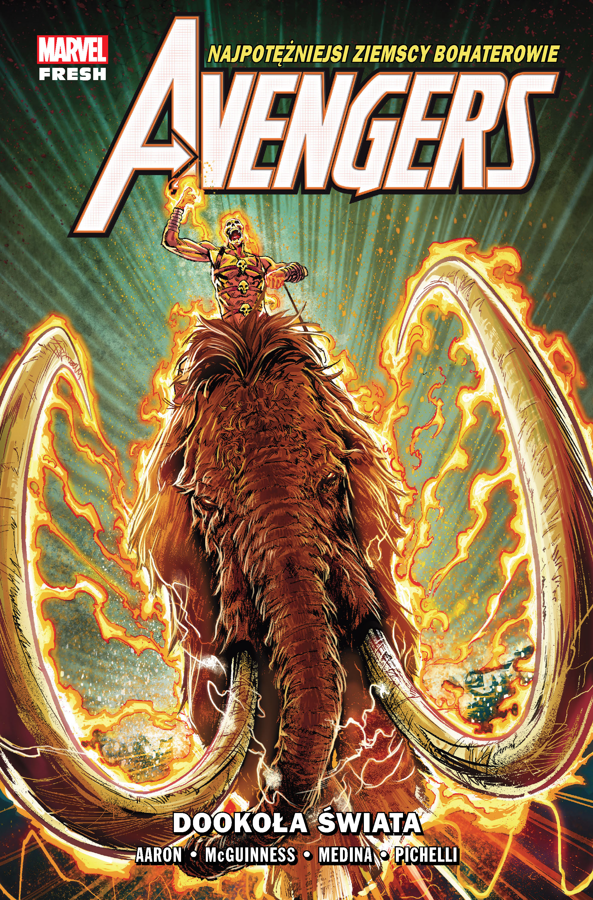 Drugi tom przygód Avengers z serii wydawniczej Marvel Fresh! Drużyna Avengers oficjalnie wraca do akcji. Po starciu z Mrocznymi Celestianami otrzymała nową bazę na szczycie świata, kryjącą cuda, o jakich nie śniło się ani magom, ani naukowcom. Ma też nowego szefa – Czarną Panterę! Sojusz najpotężniejszych ziemskich bohaterów z Wakandą nie przypada jednak do gustu ani rządowi Stanów Zjednoczonych, ani Namorowi – władcy Atlantydy od dawna skonfliktowanej z królestwem T’Challi. W dodatku na jaw wychodzą kolejne tajemnice z historii pradawnej drużyny Avengers. Tym razem będzie to prawda o narodzinach pierwszego Ghost Ridera… Autorem tej opowieści jest Jason Aaron, zdobywca Nagrody Eisnera i innych najważniejszych komiksowych wyróżnień, znany z takich serii jak: „Skalp”, „Thor Gromowładny” i „Potężna Thor”, „Punisher Max” czy „Conan Barbarzyńca”. Rysunki stworzyli: David Marquez („II wojna domowa”, „Niezwyciężony Iron Man”), Ed McGuinness („Superman/Batman”), Sara Pichelli („Strażnicy Galaktyki”) i Cory Smith („Amazing Spider-Man: Globalna sieć”). Album zawiera materiały opublikowane pierwotnie w zeszytach #7–12 serii „Avengers”.