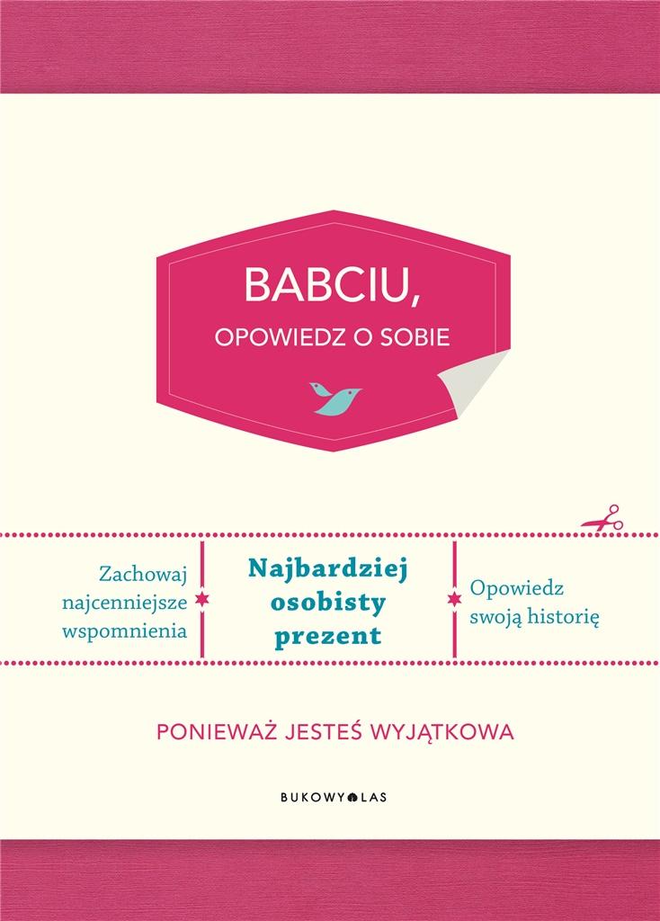 Darowując książkę Babciu, opowiedz o sobie, dajesz swojej Babci więcej niż pięknie wydaną, ładnie oprawioną, nienapisaną jeszcze historię. Dajesz jej poczucie, że jest dla Ciebie ważna. Dzięki odpowiedziom na proste i wnikliwe, zawarte w dzienniku pytania dajesz babci możliwość spisania losów, wspomnień i przelania uczuć co sprawi, że dotąd puste strony dziennika staną się dla niej podarunkiem bardzo osobistym, a dla Ciebie i całej rodziny będą stanowić bezcenną pamiątkę.