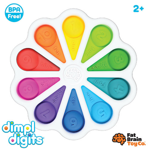 Bąbelki Cyferki Dimpl. Zabawka sensoryczna. Małe paluszki nie będą mogły się oprzeć miękkim, silikonowym bąbelkom w kolorach tęczy. Zabawka o nowoczesnym designie, innowacyjna, kolorowa, stymulująca zmysły dziecka. 10 baniek, umieszczonych w plastikowej ramie, można wciskać i wypychać, przy tym ucząc się cyferek. Każdy bąbelek z jednej strony ma wytłoczone cyferki od 1 do 10 z towarzyszącym mu napisem w języku angielskim, z drugiej strony kropki reprezentujące cyfrę i opis w języku hiszpańskim. Sensoryczna zabawka dla dzieci już od 2 lat, która będzie stymulować, uczyć i bawić malucha. Bąbelki Cyferki Dimpl: Zabawka nagrodzona główną nagrodą Targów Kielce, Kids' Time Star! Sensoryczna zabawka do nauki cyferek w języku angielskim i hiszpańskim. 10 kolorowych silikonowych baniek w kolorach tęczy w plastikowej ramie. Pomaga w rozwoju umiejętności motorycznych, uczenia się cyferek, liczenia. Z jednej strony bańki mają cyferki i opis w języku angielskim, z drugiej liczba kropek i opis w języku hiszpańskim. Przepiękna zabawka o nowoczesnym designie, o której nie można oderwać rąk i wzroku. Bezpieczna zabawka, nie zawiera BPA, plastik najwyższej jakości. Dla dzieci już od 2 lat +.