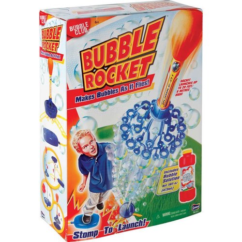 To coś specjalnie dla amatorów kosmicznych wrażeń! Fantastyczna bąbelkowa rakieta. Podstawę rakiety stanowią obręcze, które wytwarzają ogon z mnóstwa bąbelków gdy ta wznosi się w powietrze. Specjalny płyn do baniek jest zawarty w opakowaniu. Zabawka ma ciekawy wygląd, zbudowana jest z form i materiałów przyjazny dziecku. Wierzchołek rakiety wykonany jest z gąbczastego materiału do miękkich lądowań. Wyrzutnia zawiera specjalną głęboką szufladkę z wylewką (dzióbkiem) do opróżniania bez bałaganu. A rozmiar podkładki jest dopasowany do rozmiaru stopu dziecka. Idealna do zabawy na świeżym powietrzu. Wysokość rakiety wynosi 24 cm, a rozmiar zestawu to: 21x30,5x8,5cm. Prosty montaż elementów. Rakietowy skok i ekspres do pęcherzyków w jednym. Do zestawu dołączone 473ml płynu do robienia baniek.