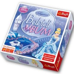 Pięknie wydana, przestrzenna gra dla dziewczynek w wyjątkowo baśniowym stylu. Planszę tworzy przestrzenny zamek Księcia z wieżą zegarową, tarasem i mostem – gracze przenoszą się do świata baśni, gdzie trwają przygotowania do balu. Babidi, babidi bum! – brzmi zaklęcie, które pomoże Kopciuszkowi pójść na bal i spotkać się z Księciem. Jednak żeby móc je wypowiedzieć, trzeba pomóc Kopciuszkowi oddzielić magiczne kulki od magicznego piasku. To właśnie one posłużą graczom do czarów – Kopciuszek pójdzie na bal, jeśli wyczarujemy karocę, suknię, pantofelki, konie i Stangreta. W zebraniu wszystkich żetonów pomogą pionki – Myszki, ale zegar na wieży przypomina o upływającym nieubłaganie czasie. Nim wybije północ, Kopciuszek musi mieć już wszystko, co potrzebne do pójścia na bal. Gracz, który wyczaruje dla Kopciuszka niezbędne przedmioty i zwierzęta, trafiając magicznymi kulkami w odpowiednie miejsca na planszy, zostanie zwycięzcą. Jeśli nikomu czary nie powiodą się przed północą, w spotkaniu Kopciuszka z Księciem pomoże piękna puzzlowa układanka. Komu uda się zostać dobrą Wróżką? Przed rozpoczęciem gry gracze konstruują zamek Księcia i mieszają magiczny piasek z magicznymi kulkami. Na tak przygotowanej planszy rozpocznie się magiczna rozgrywka. Bobidi, babidi bum! Zawartość pudełka Plansza – schody do zamku Konstrukcja zegara Pionki – Myszki Podstawki pod pionki Kostka Karty z zadaniami Magiczne kulki Magiczny piasek 20 żetonów Puzzle 20 elementów Listek klejowy Instrukcja Wiek: 5+ 2-4 graczy 30-45 minut