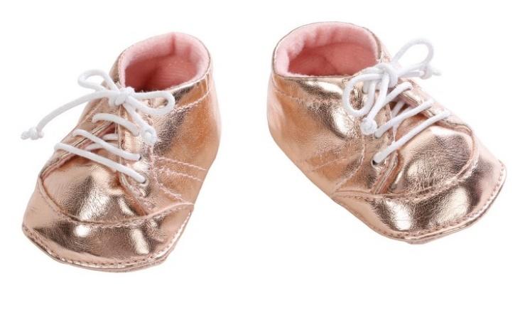 Oto propozycja bucików dla lalki Baby Annabell. Złote półbuty, wiązane białymi sznurówkami na pewno przypadną do gustu każdej ""małej mamie"".