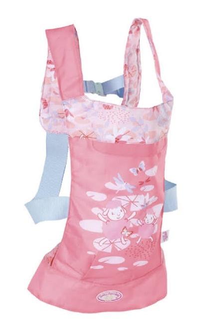Leżenie w wózku podczas wycieczki jest zbyt nudne dla Baby Annabell. W końcu chce odkryć cały szeroki świat. I właśnie to może zrobić w swoim nosidełku. Można ją nosić na plecach jak plecak lub na klatce piersiowej, w dwóch możliwych pozycjach do siedzenia. Może albo patrzeć na zewnątrz i obserwować, co się przed nią dzieje, albo być zwrócona w stronę mamy i tatusia i może się do nich przytulać. Urocze nadruki pokazują ulubione miejsce Baby Annabell w parku. Uwielbia obserwować ważki i lilie wodne przy stawie. System pasków można dopasować do wzrostu dziecka.