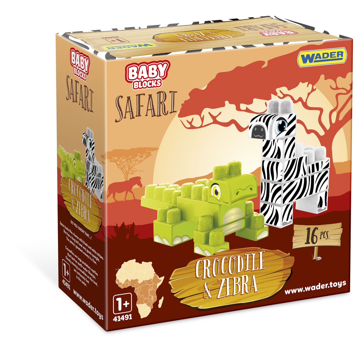 Baby Blocks Safari krokodyl i zebra 16 elementów